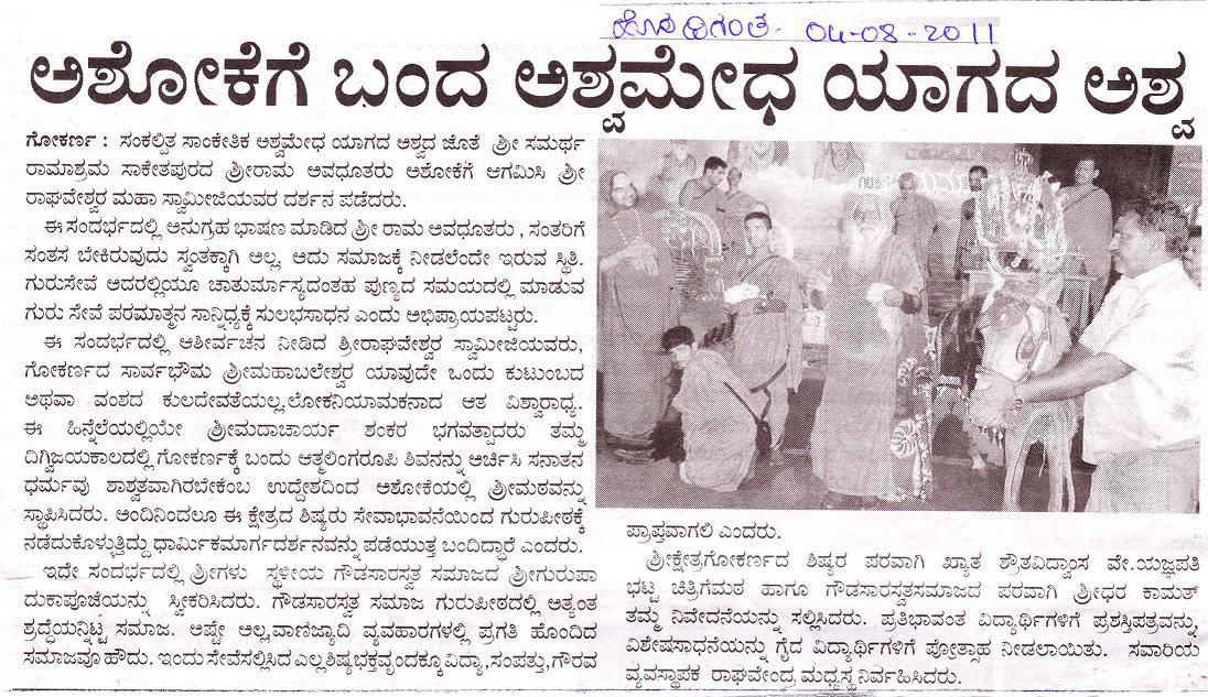 ಹೊಸದಿಗಂತ: ಅಶೋಕೆಗೆ ಬಂದ ಅಶ್ವಮೇಧ ಯಾಗದ ಅಶ್ವ