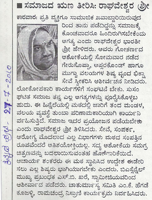ಕನ್ನಡ ಪ್ರಭ: ಸಮಾಜದ ಋಣ ತೀರಿಸಿ: ರಾಘವೇಶ್ವರ ಶ್ರೀ