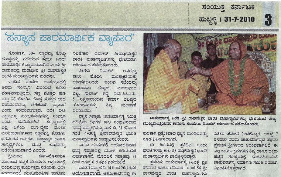 31 ಜುಲೈ 2010 ಸಂಯುಕ್ತ ಕರ್ನಾಟಕಃ ಸನ್ಯಾಸ ಪಾರಮಾರ್ಥಿಕ ವ್ಯಾಪಾರ