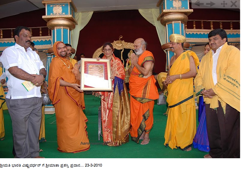 ಇಂದು ನಡೆದ ಶ್ರೀರಾಮೋತ್ಸವ ಸಭಾ ಕಾರ್ಯಕ್ರಮದಲ್ಲಿ ಶ್ರೀಮತಿ ಭಾರತೀ ವಿಷ್ಣುವರ್ಧನ್ ರವರಿಗೆ ಶ್ರೀಗಳು ಶ್ರೀಮಾತಾ ಪ್ರಶಸ್ತಿ ಪ್ರಧಾನ ಮಾಡಿದರು..